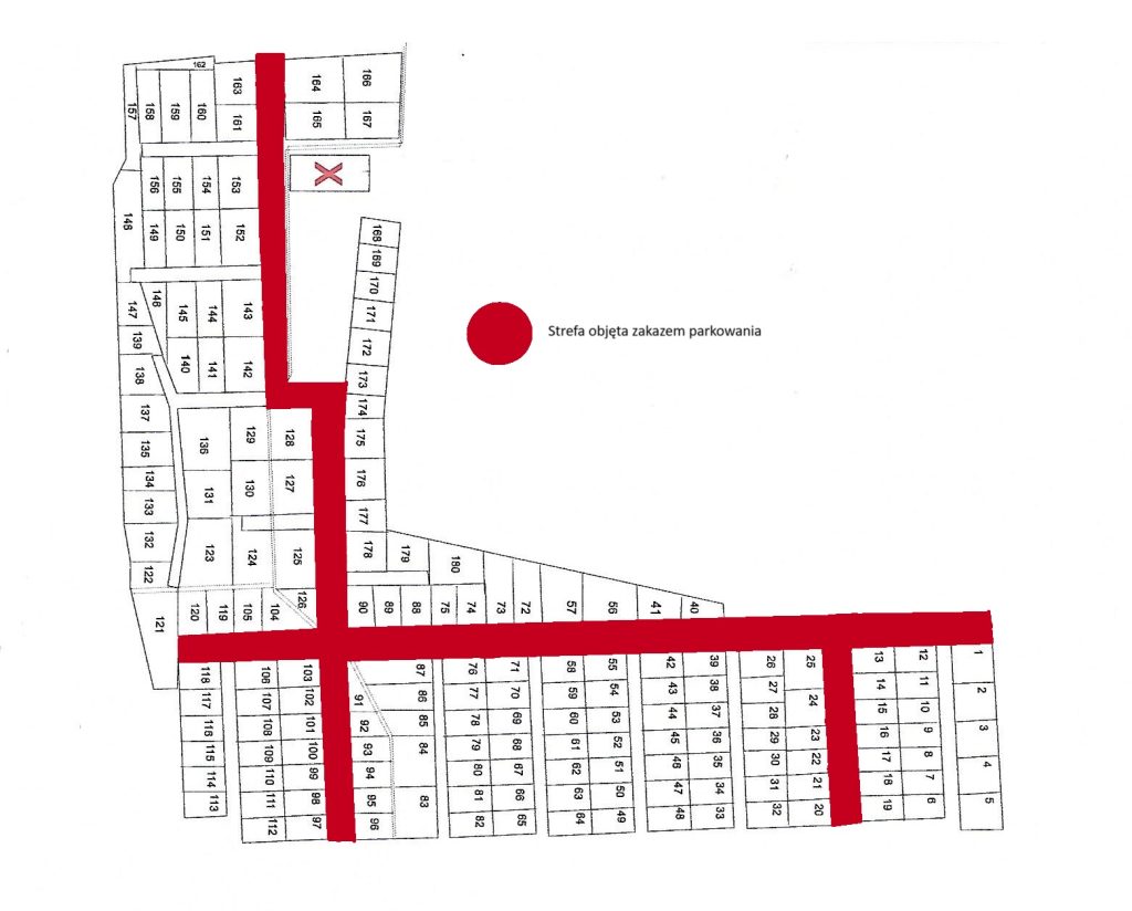 W związku z zaleceniami Policji oraz Straży Pożarnej zostaje wprowadzony zakaz parkowania pojazdów na głównych alejkach dojazdowych zgodnie z mapą prezentującą obszar objęty zakazem. Na alejkach zostaną wywieszone znaki Zakazu.